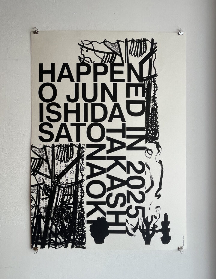 現在開催している「物と言(こと)の舎(や)」プレゼンツ Vol.1 O JUN+石田尚志+佐藤直樹「2025年のこと」(https://monotokotonoya.jp)の、シルクスクリーンで刷られたポスターの黒ですね。デザインを大島依提亜(おおしま・いであ)さんに、プリンティングを本多伸二(ほんだ・しんじ)さんと信田風馬(のぶた・ふうま)さんにお願いしています。いろいろと答えの出ない話をしてきましたが、自分のなかで、この黒がいまいちばん良い黒だと感じています。