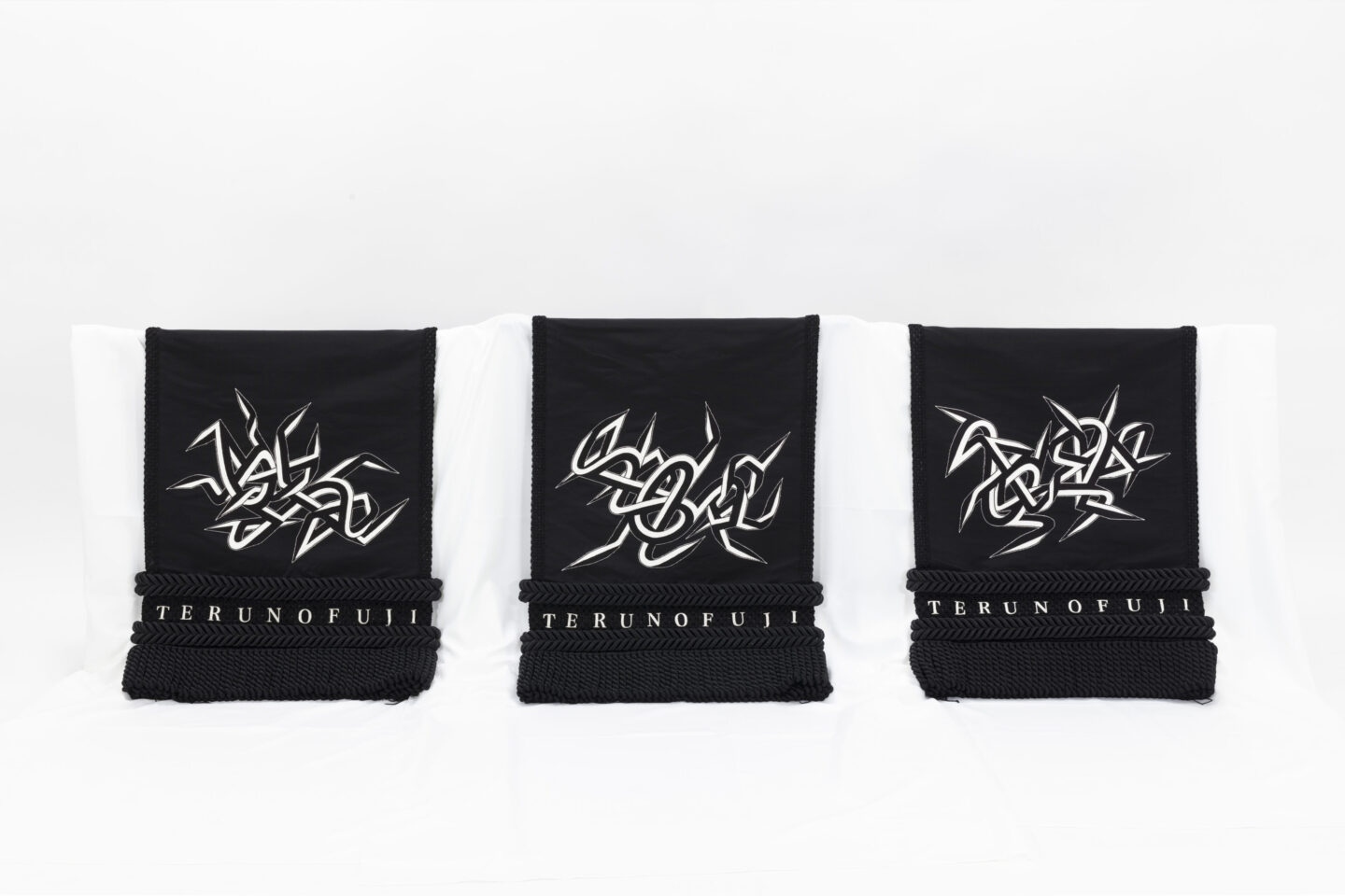 たとえば、大相撲の横綱・照ノ富士関の化粧まわしを制作した際には、エアロゾルスプレーではなく刺繍を選びました。あらかじめレーザーでクイックターン・ストラクチャーのシルエットを化粧まわしに転写し、そのラインに沿って職人に刺繍を施してもらいました。このように、媒体やコラボレーションの特性ごとに、適切な技法や仕上がりを選択することで、そのときにしかないクイックターン・ストラクチャーが生み出されます。