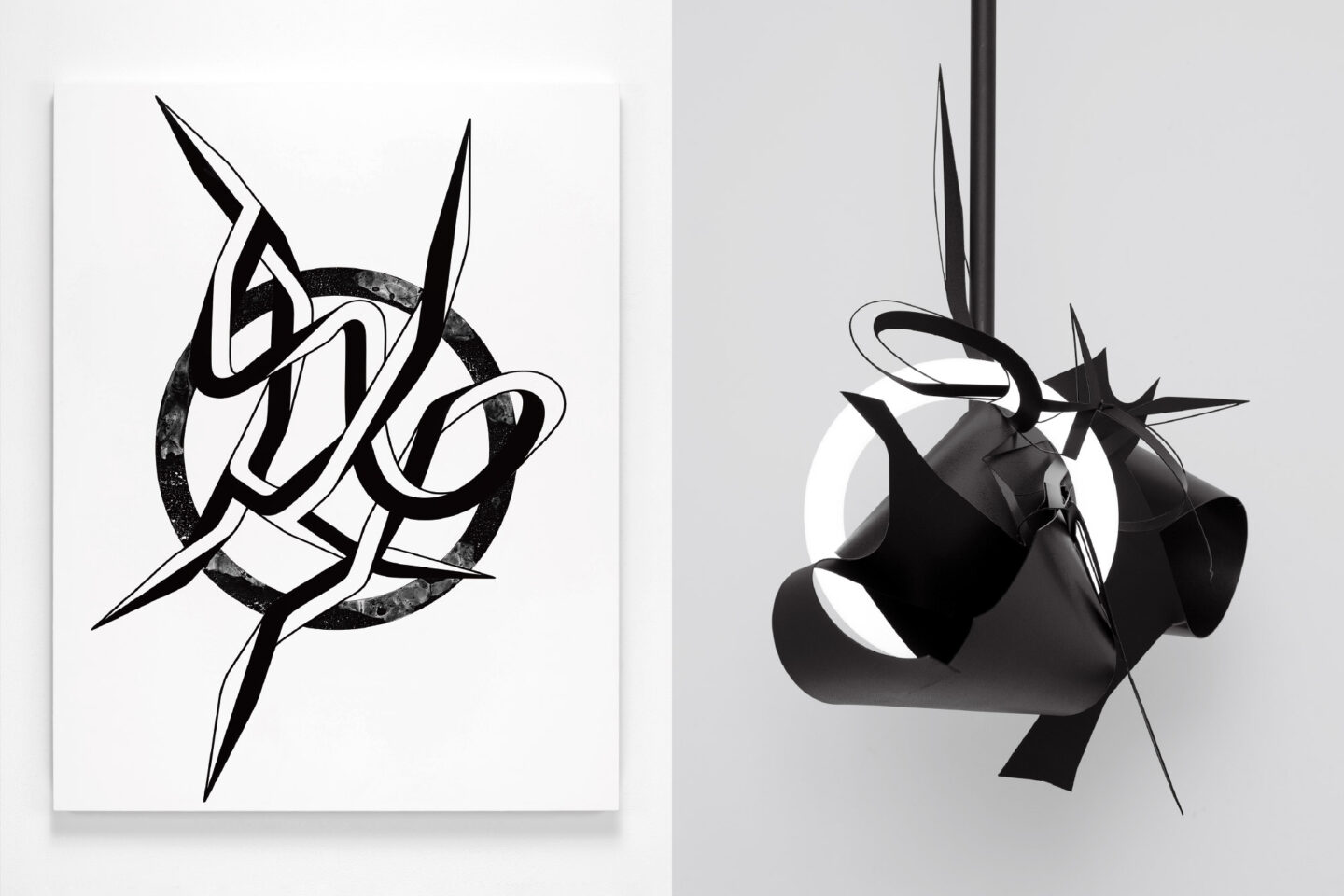 「クイックターン・ストラクチャー」は個別の作品を横断して存在するアイコンでありつつ、あくまで概念であるのに対し、「FFIGURATI」は、「クイックターン・ストラクチャー」が作品ごとに具体的なかたちとして現前した姿を指します。単一のアイコンから生まれた多様なかたちを「FFIGURATI」としてとらえる構造は、黒について先述した「一にして多である」という考え方に通じています。共通する核があり、そこからひとつひとつ、かたちの異なる作品が派生していく。「FFIGURATI」はすべての作品にナンバリングを施し、ライフワークとして続いていきます。