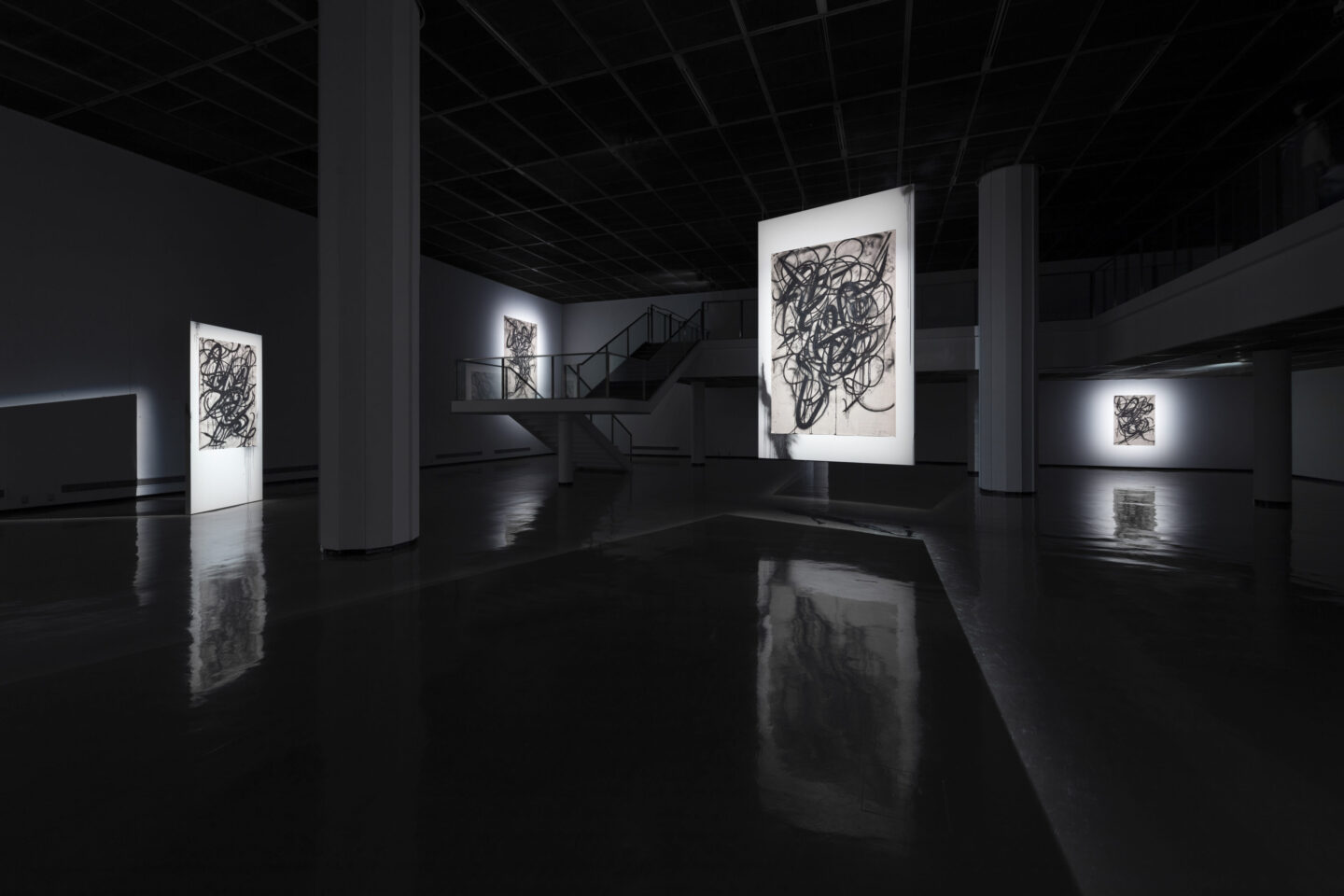 大山の「黒」もまた、広がり、豊かだ。刻まれた黒い痕跡が、やがて街に馴染んでいくように、あるいは、墨がにじみの奥でゆっくりと広がるように、黒は空間と時間に作用し、私たちの知覚や感覚に語りかけてくる。物事をどう認識し、どのような動きのなかに身を置くのか、どこまでが自分で、どこからが世界なのか。黒を見つめることは、境界に揺らぎをもたらしながら、みずからの現在地を見つめることにもつながっていく。