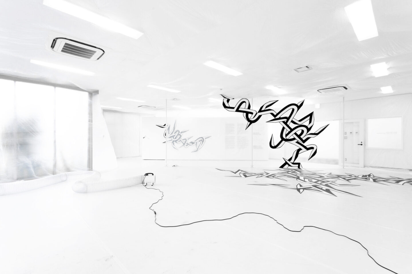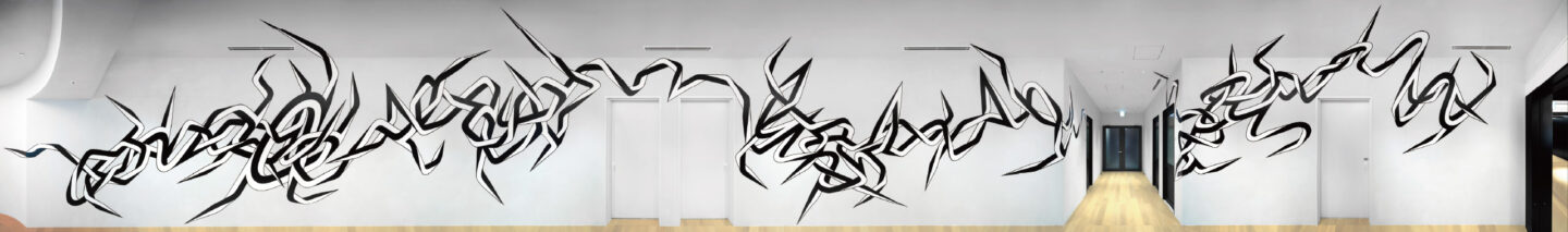 ストリートにライティングする行為の多くは無許可のため、問題視されることもありますが、文字の造形をとおして個人のアイデンティティを表すという点には、強い創造性を感じていました。ただ、文字にはどうしても造形の限界がある。そのため私は、文字を解体し、線の動きそのものを抽出することで、自分の表現を模索するようになりました。その過程で生まれた抽象的なかたちを「クイックターン・ストラクチャー」と呼んでいます。