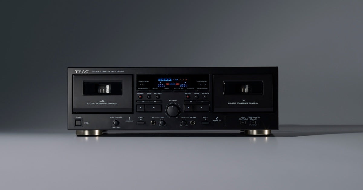 『W-1200』は、ワンウェイ(片道走行)カセットメカを2基搭載したダブルデッキに、マイクミキシング機能やUSBデジタル出力を備えた多才なカセットデッキ。