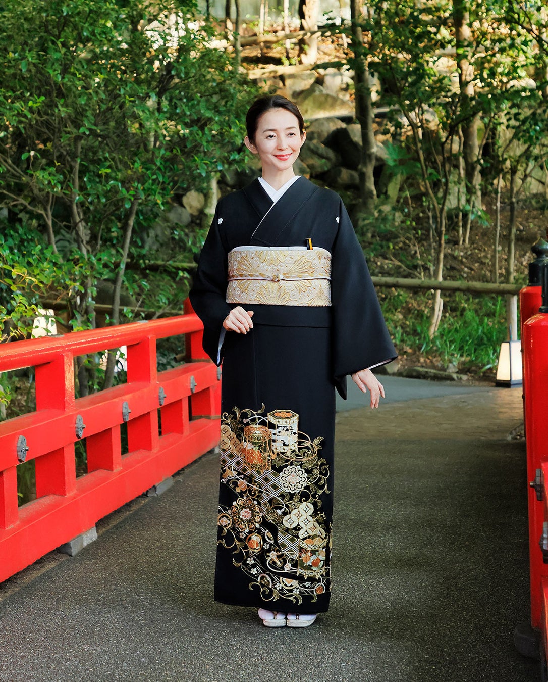 今回発表した新作は全7型。職人の技が光る手刺繍や手描き友禅による、品格を感じさせるこだわりの逸品が揃っており、金駒刺繍をはじめとした多様な刺繍技術や手描きの繊細な色遣いで、幸せを願う吉祥文様を豊かに表現し、幅広い年代のお客様にお召しいただける黒留袖に仕上げている。