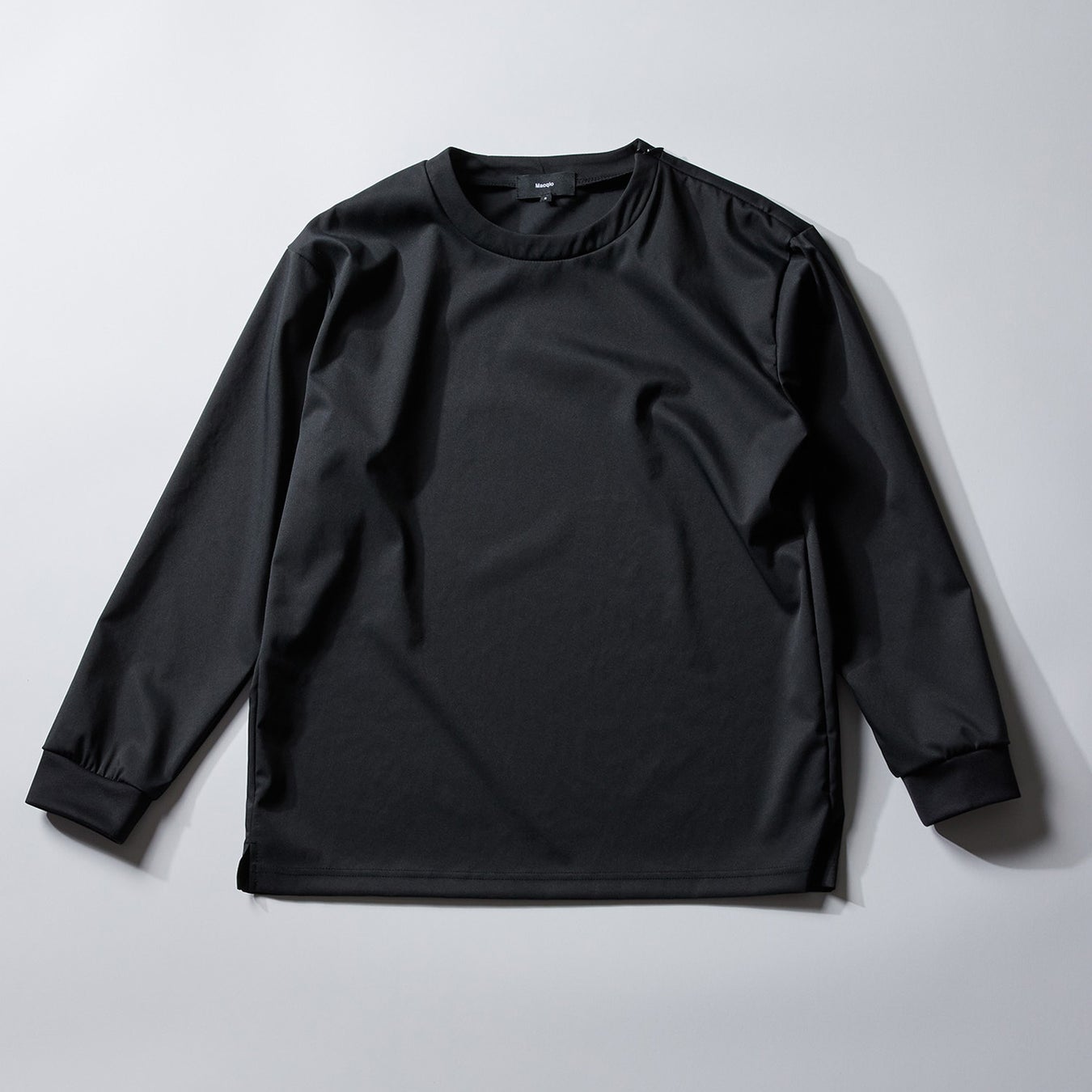 特徴:独自開発素材「ultimex」を使用した長袖Tシャツ。体型を拾いにくい、リラックス感のあるオーバーシルエット。肩口ファスナーで着脱をイージーに。ストレッチ・撥水・速乾・ウォッシャブル。