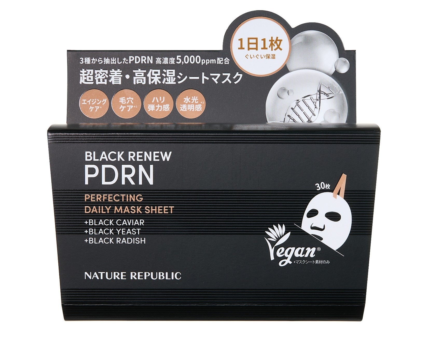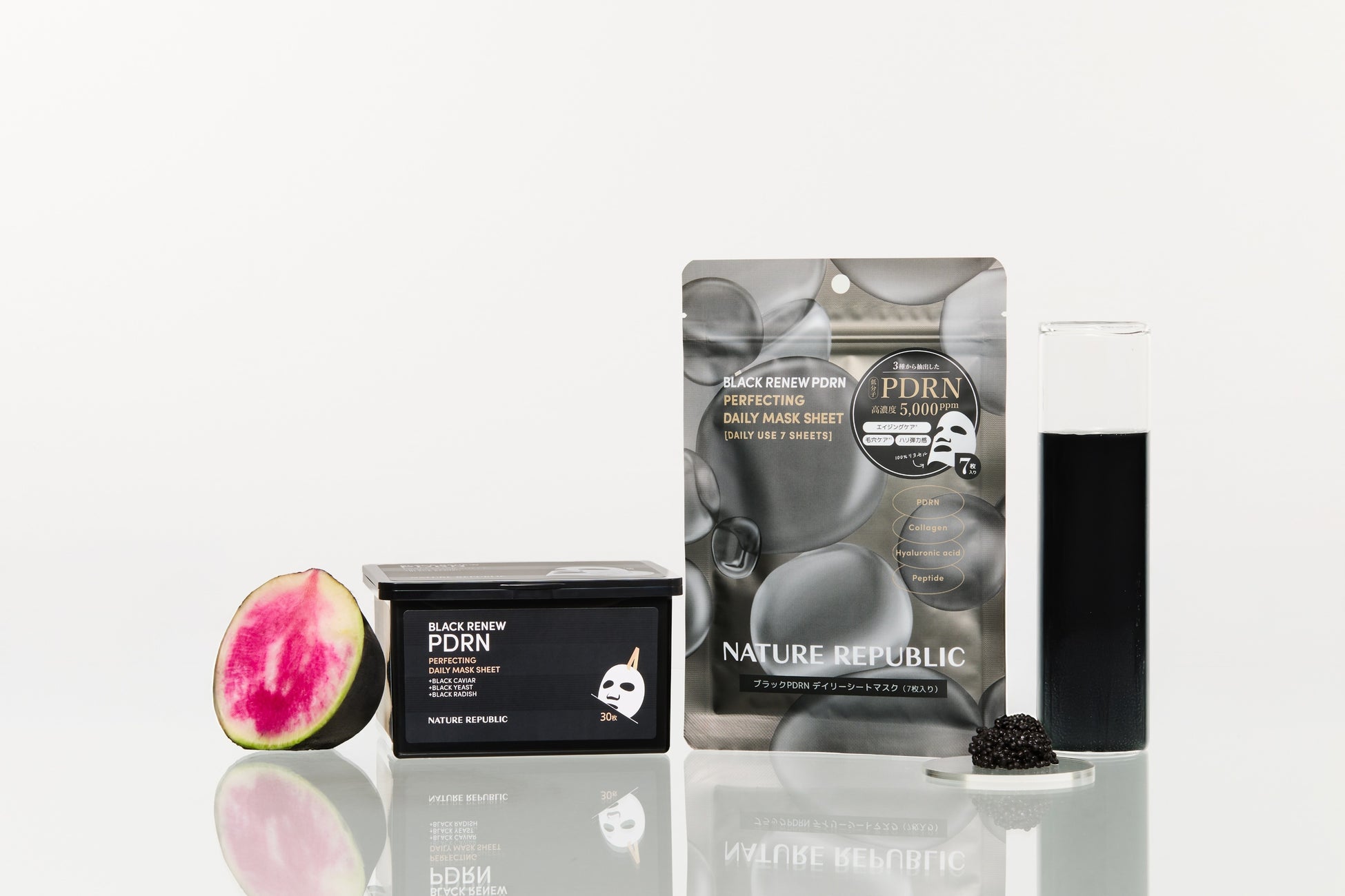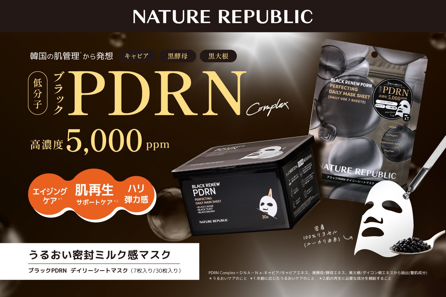 株式会社ネイチャーリパブリックジャパン(所在地:東京都浜松町)は、韓国の肌管理*1に着想を得て開発した「ブラックPDRN デイリーシートマスク」を2025年6月6日(金)より発売する。韓国の肌管理*1を由来とする美容成分「PDRN」に注目が集まっている中、ネイチャーリパブリックでは3種の“黒”にまつわる素材から抽出したPDRN配合のシートマスクを開発した。キャビア(動物由来)+黒大根(植物由来)+黒酵母(菌由来)から抽出したネイチャーリパブリック独自の超低分子PDRN Complex*を5,000ppm配合した今までにないリッチな使用感のデイリーシートマスクとなっている。