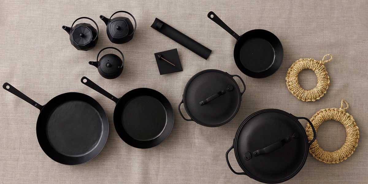 素材そのものの黒の美しさが際立つ、鉄のアイテム。南部鉄器や燕三条など、産地にこだわった職人の想いが宿るキッチンツールたちを集めた。調理や湯沸かしをする際に鉄分が溶け出すため鉄分補給にもなる。