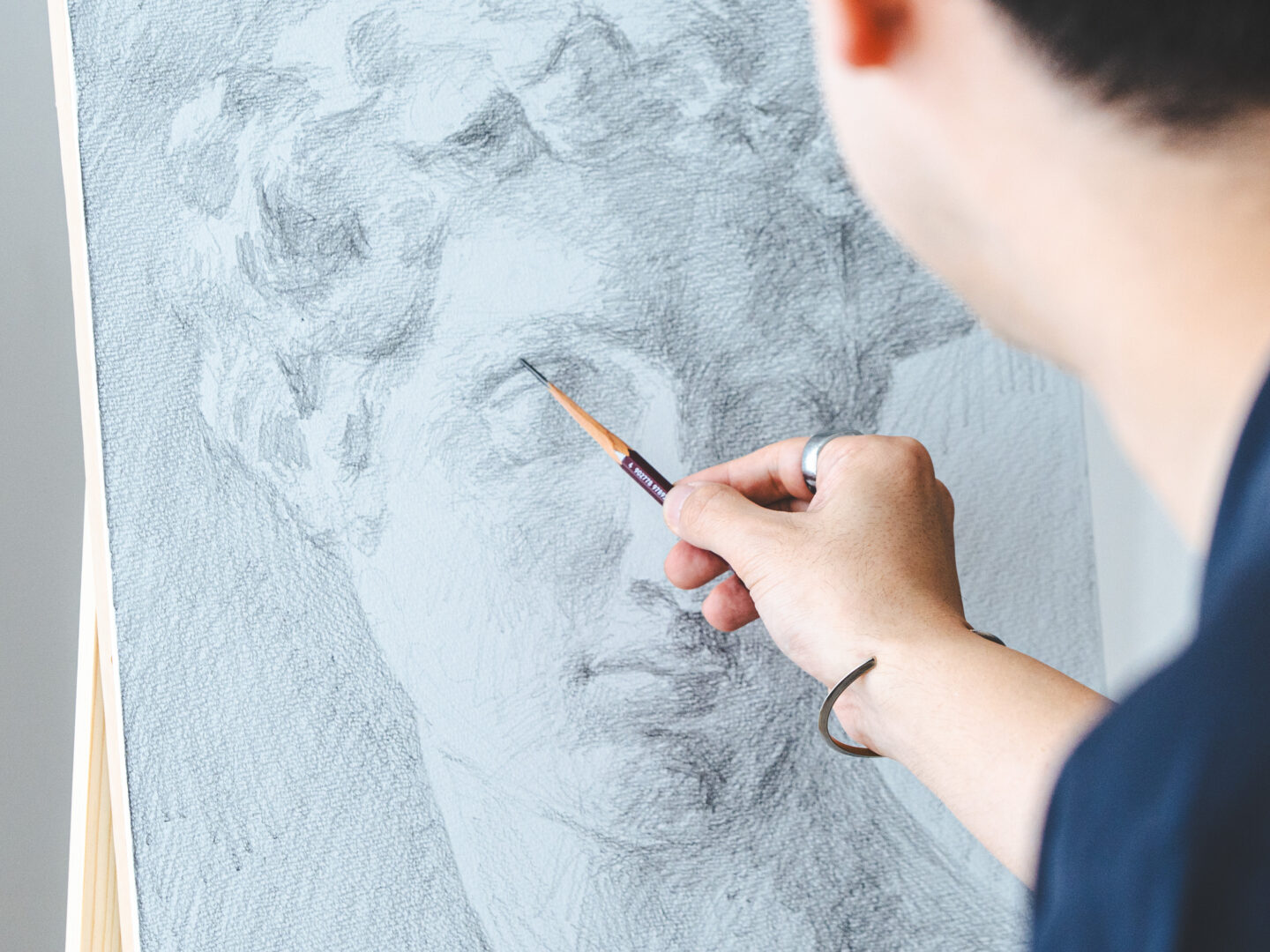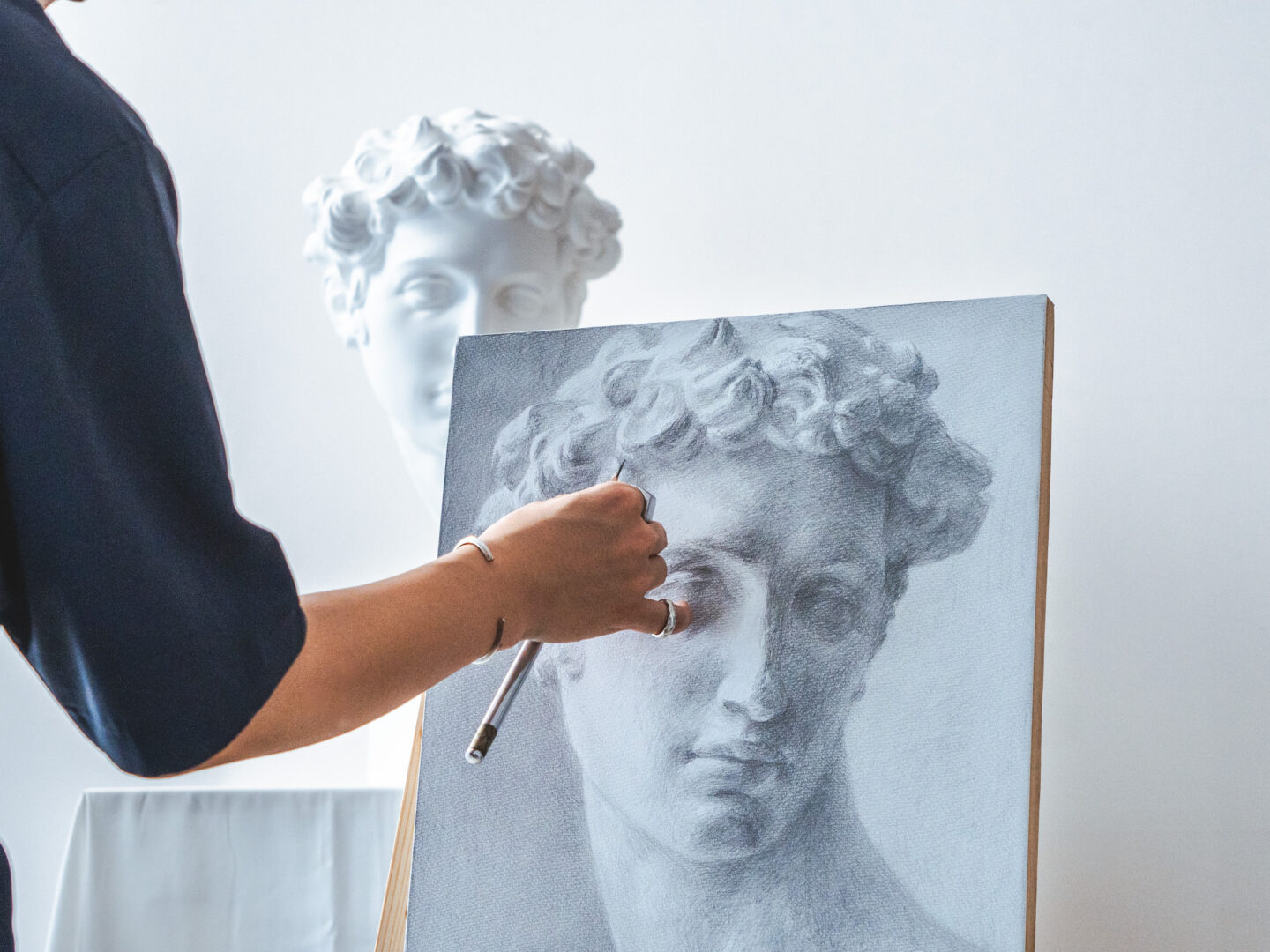 私にとって「黒の不思議」にまつわる原体験といえば、高校生のころ。美大に入ることを目標としていた私は、美大入試の必須科目となるデッサンを、美術予備校で学んでいました。デッサンとは、鉛筆や木炭などの黒い画材を使って、モチーフとなる対象物を、画用紙など平面の上に描き起こしていくこと。目に見えるものを忠実に再現するという、基礎画力を求められます。