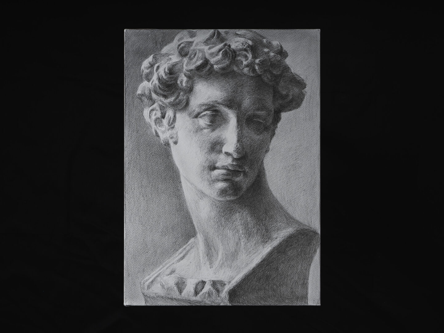 光を追って、影を探す…この感覚には心地よさもあったのですが、同時に、私を混乱させるものでもありました。特に石膏デッサンは、もはや光と影の迷宮。真っ白の物体を描くのに、使うのは黒い鉛筆。石膏像に落ちる影をとらえて白い紙に黒で描いていく工程において、光と影、白と黒をいったりきたりしていると、私は何を見つけて、何を描いているのか…という感覚が生まれ、観察すればするほど、わけがわからなくなってしまう。でも、うまい人は本当にうまくて、光と影だけの描写なのに、立体感はもちろん、質感や重量感まで画用紙に浮かんでくるのです。
