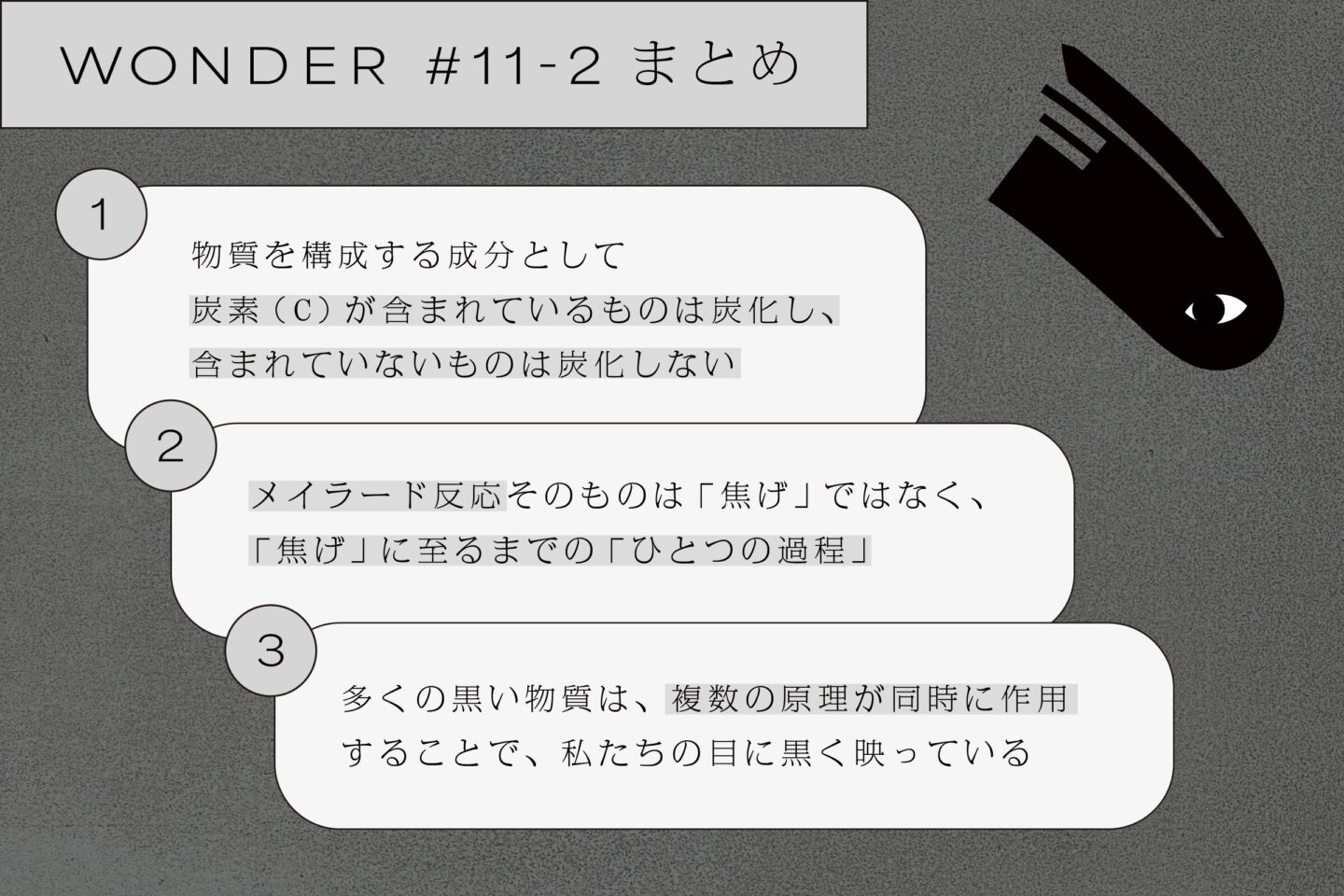焦げから始まった探求は、やがて炭素という元素の多面性に触れ、再び「黒」の不思議へと還ってくる。黒から生まれるWONDERの先には、果てのない、私たちがまだ見ぬ探究の可能性が広がっている。