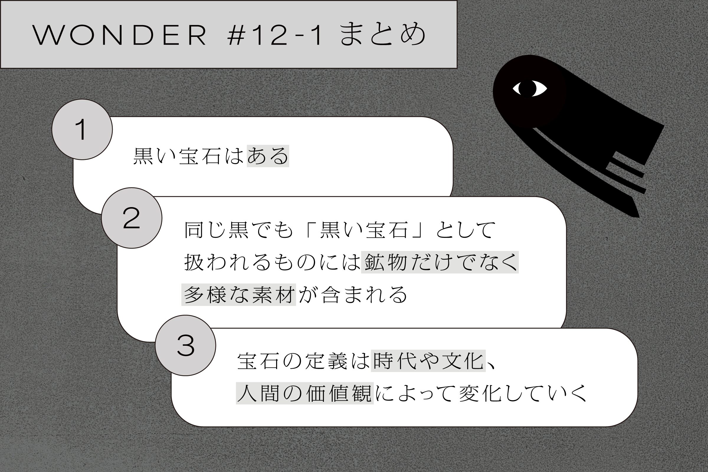 「黒い宝石は存在するのか」という素朴な疑問を追い、ひとつの答えにたどりついたと思えば、また新たなWONDERの扉が開かれる。取材を進めるなかで次第に気になりはじめたのは、宝石をとりまく自然物を分類する定義、すなわち“言葉”だった。