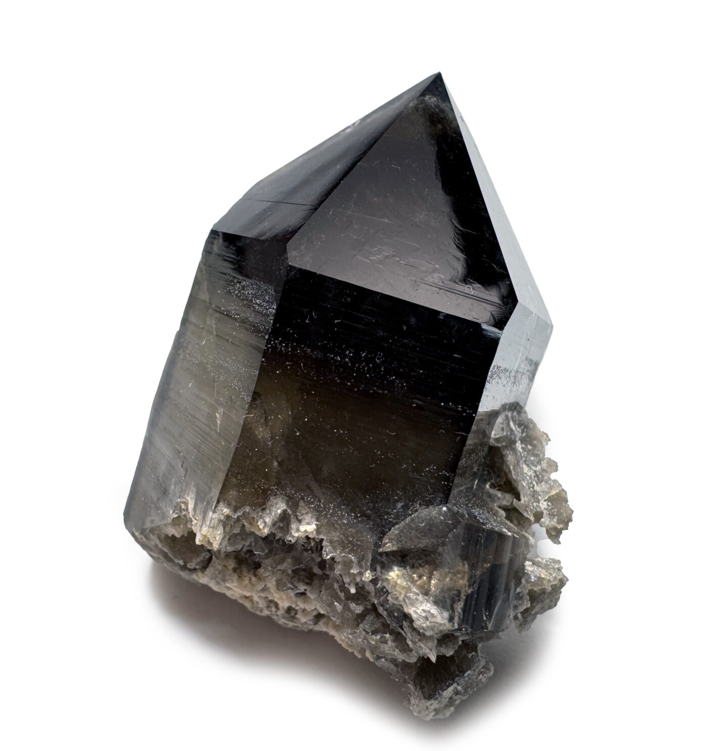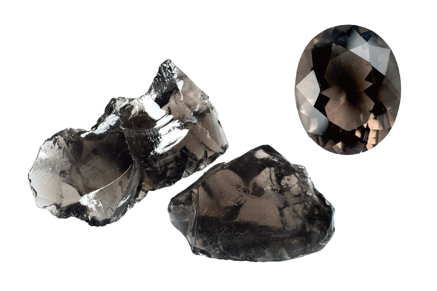 石橋さん:石英(水晶)という鉱物の一種です。地下深くでマグマが固まって岩石ができる過程で、岩石中にできた空洞で結晶がゆっくり成長します。透明感がありながら、煙が閉じ込められたような奥行きのある色合いが特徴です。古代ケルトでは、悪夢や影を吸い込む石として護符に用いられていたといわれています。