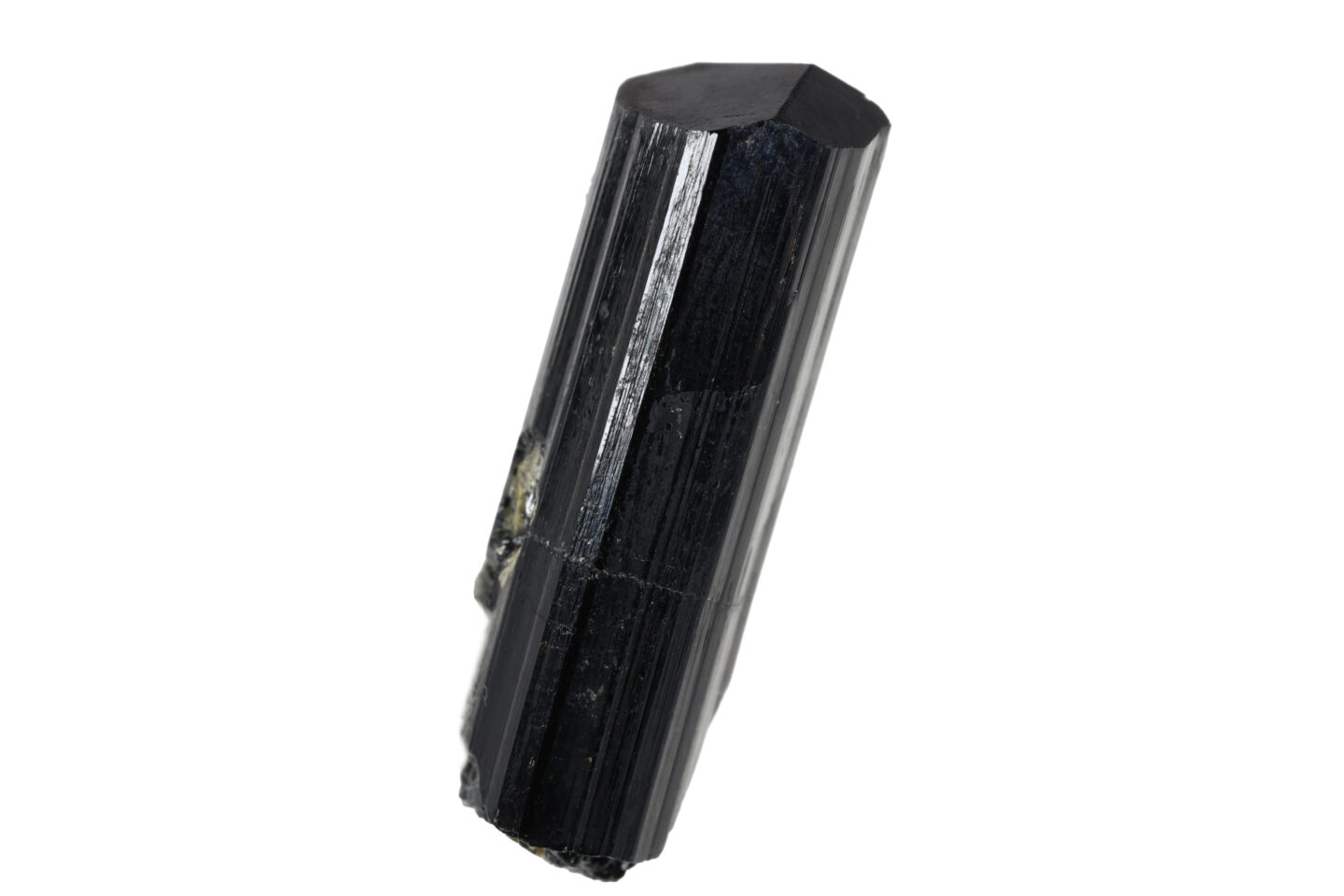 石橋さん:トルマリン(電気石)という化学組成が複雑な鉱物の一種です。不透明で、柱状の結晶をつくり、大きなものでは1mを超えることもあります。黒いものはトルマリンという種のなかでも最も一般的で、自然界に存在するトルマリンの大半を占めるとされています。